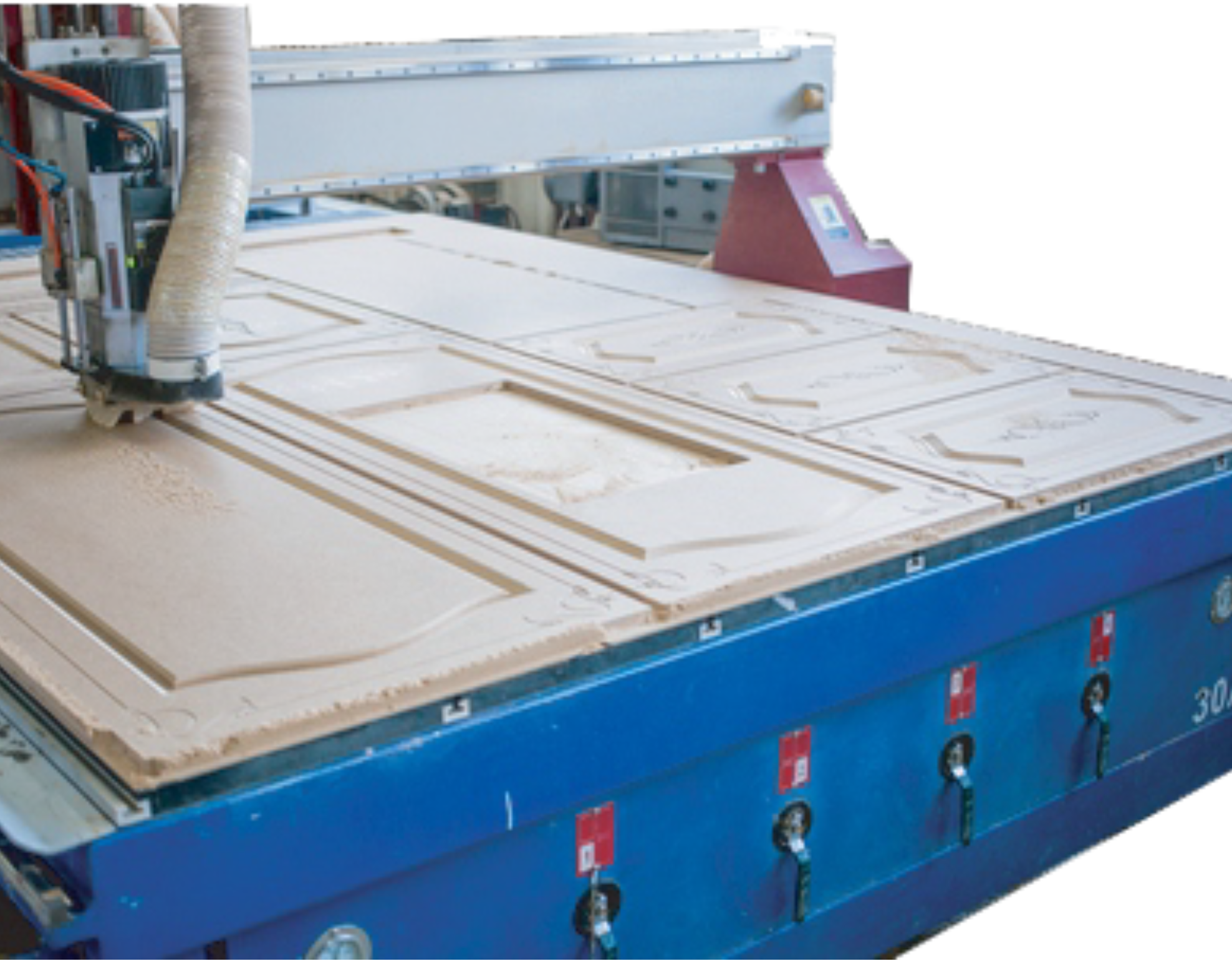 CNC (Computer Numerical Control) makinesi, bilgisayar destekli çizimlerle yönlendirilen, yüksek hassasiyetli kesim ve delik delme işlemleri için kullanılır. Mobilya üretiminde panel yüzeylerinde özel şekiller oluşturmak ve karmaşık işlemleri seri şekilde gerçekleştirmek için vazgeçilmezdir.